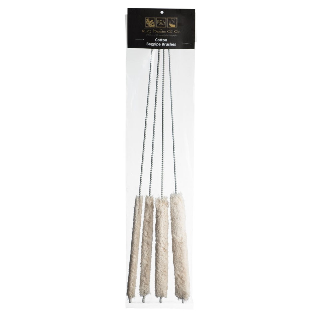 Introducing our premium set of four cloth bagpipe brushes, an essential part of any bagpipe maintenance kit. These brushes are specifically designed for swabbing out excess moisture after playing and for applying bore oil to protect your pipes and improve their longevity. Suitable for every part of the bagpipes, including drones, chanters, stocks, and blowpipes, both inside and out. These brushes are not only sturdy but are also of high quality, ensuring they last a long time. Crafted by the renowned R.G. Hardie & Co. in Scotland, these brushes are top-of-the-line in bagpipe care.