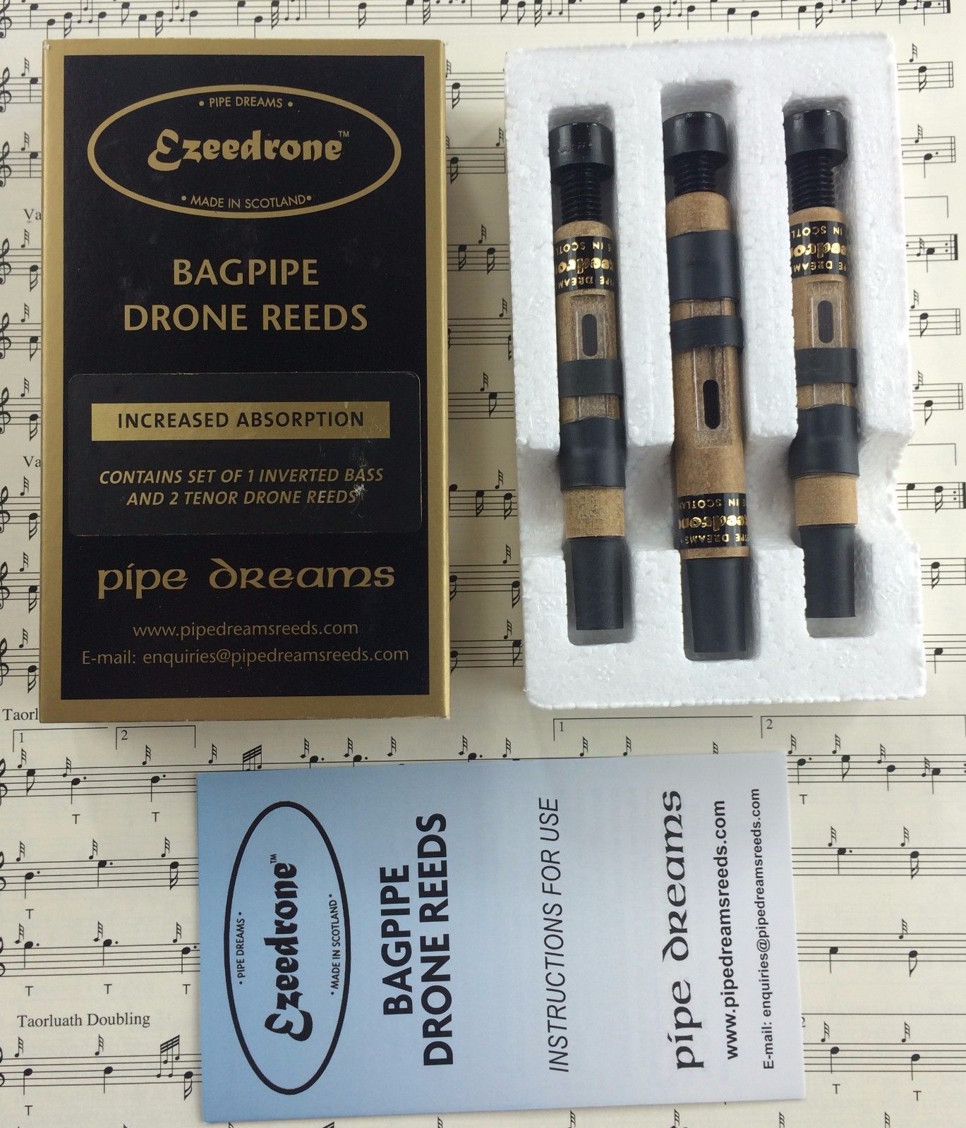 Ezeedrone Drone Reeds with Increased Absorption (1 bass, 2 tenors) EZ Bagpipes