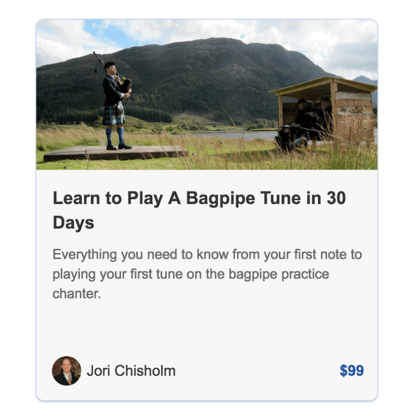 Here’s your chance to learn from Jori Chisholm, an award-winning bagpiper and founder of BagpipeLessons.com. Jori will guide you from playing your first note to learning your first bagpipe tune. No previous musical experience needed.