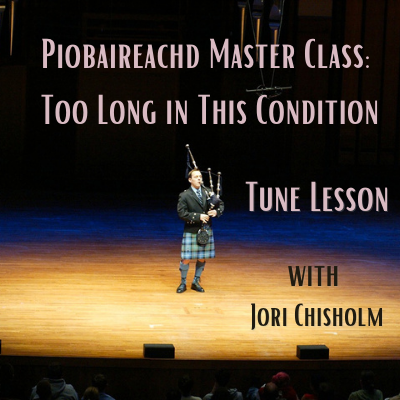 70 minute master class on the classic Piobaireachd Too Long in This Condition. Includes course handouts and the complete audio recording from a seminar Jori taught in New York City.