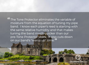 A complete reed storage and maintenance system, the Tone Protector instantly improves your bagpipe sound while keeping your reed at a constant humidity level to ensure consistent, optimal reed performance. Designed and tested by pipers to help immediately improve your bagpipe sound, the Tone Protector brings a more consistent sound from day to day, more stable pitch, greater precision of tuning and longer lasting reeds. You’ll also experience simplified tuning and clearer sound, making your pipes more efficient and easier to play.
